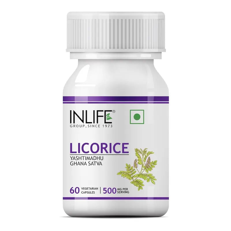 INLIFE Licorice Root Extract (Yastimadhu) Standardized to 20% Glycyrrhizinic Acid Supplement, 500 mg